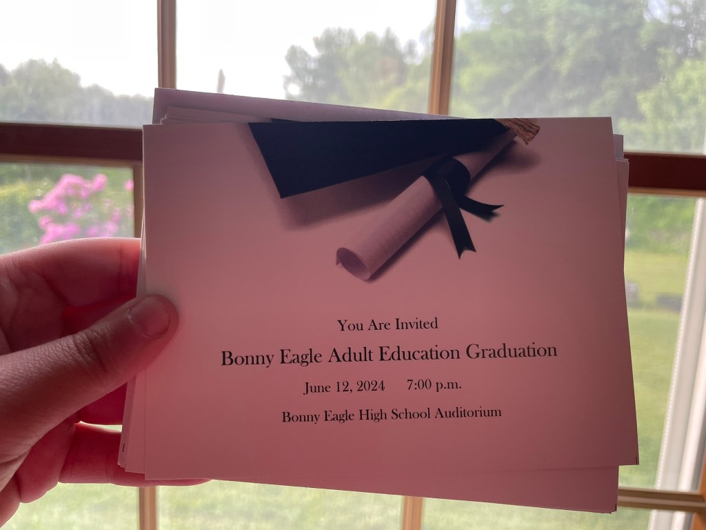 On top of everything going on this year, Tommas has been attending classes at Bonny Eagle Adult Education earning his GED. He wasn’t excited about it at first. Who would be? School stinks and I think we’re all grateful we don’t have to go anymore. After reluctantly going for the school year, Tommas took his test and passed with flying colors!